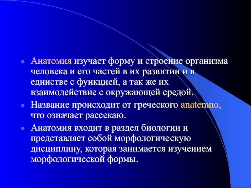 Анатомия входит в раздел биологии и представляет собой морфологическую дисциплину, которая занимается изучением морфологической формы.