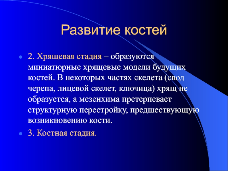 они проходят соединительнотканную, хрящевую, а затем и костную стадии (кости