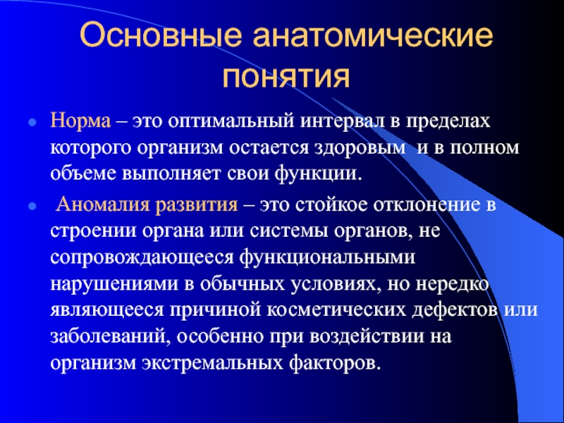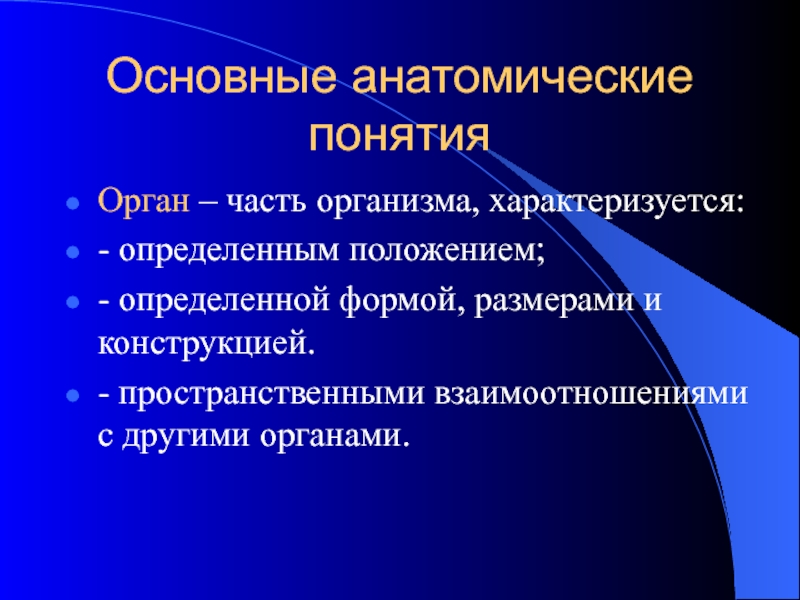 частей тела, взаимное расположение органов, пространственные отношения анатомических образований по