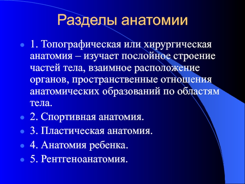 1. Топографическая или хирургическая анатомия – изучает послойное строение