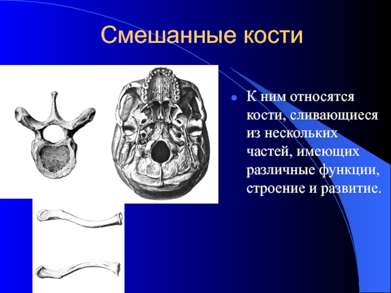 К ним относятся кости, сливающиеся из нескольких частей, имеющих