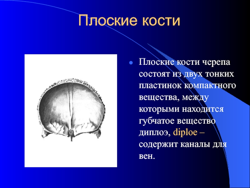 Плоские кости черепа состоят из двух тонких пластинок компактного