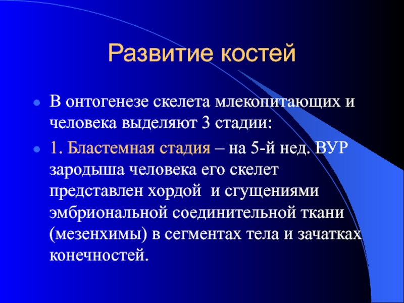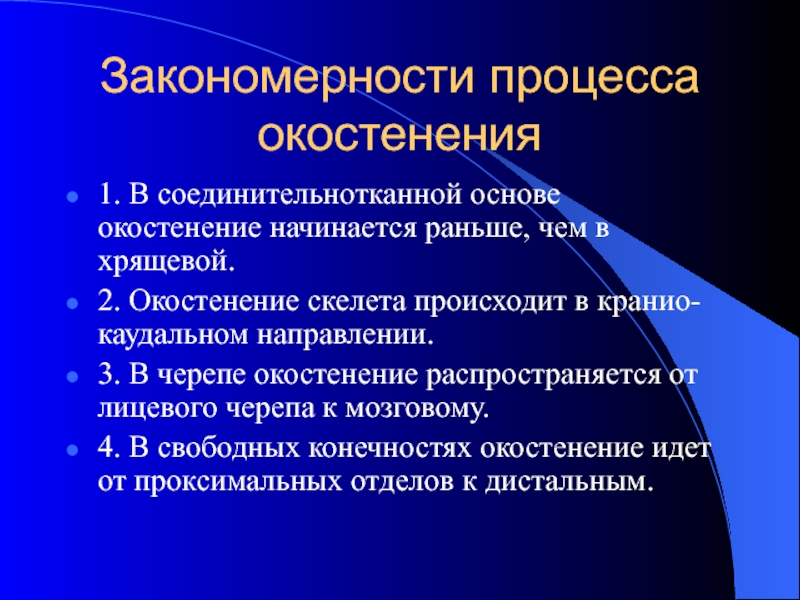 2. Окостенение скелета происходит в кранио-каудальном направлении.