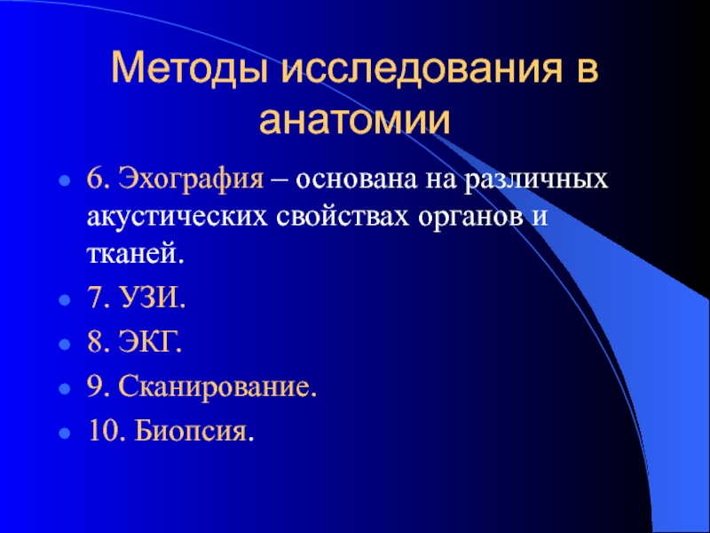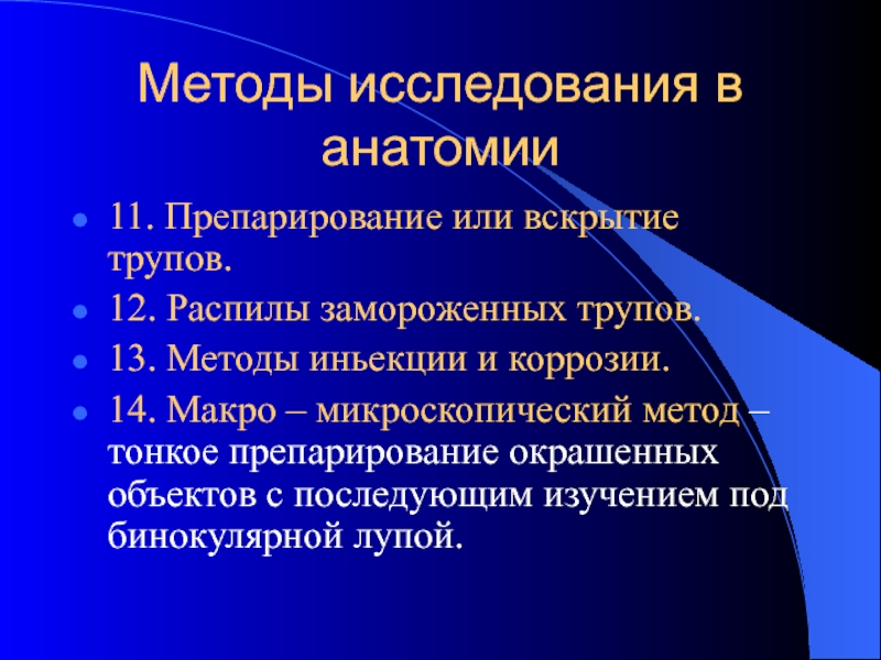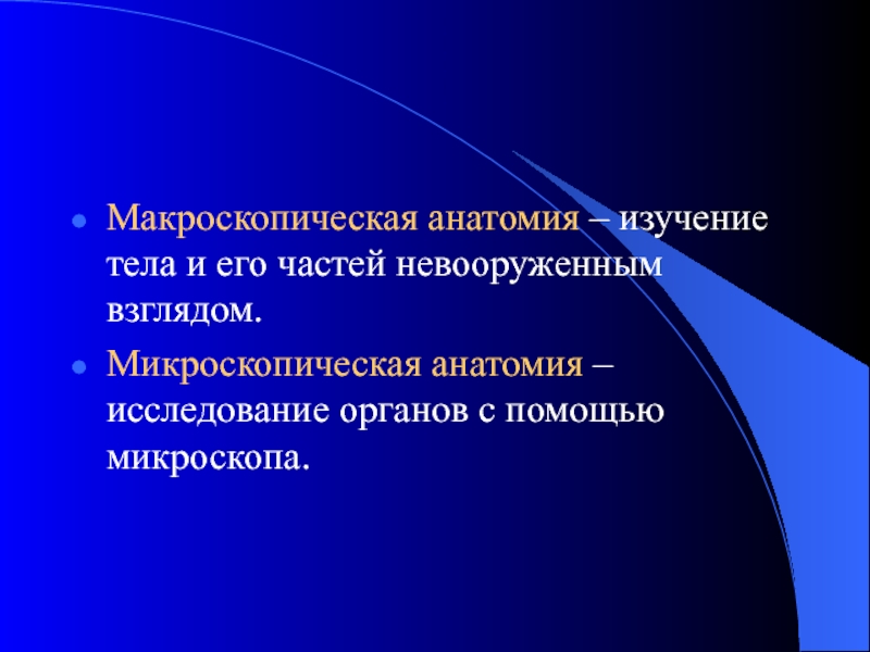 Макроскопическая анатомия – изучение тела и его частей невооруженным взглядом.