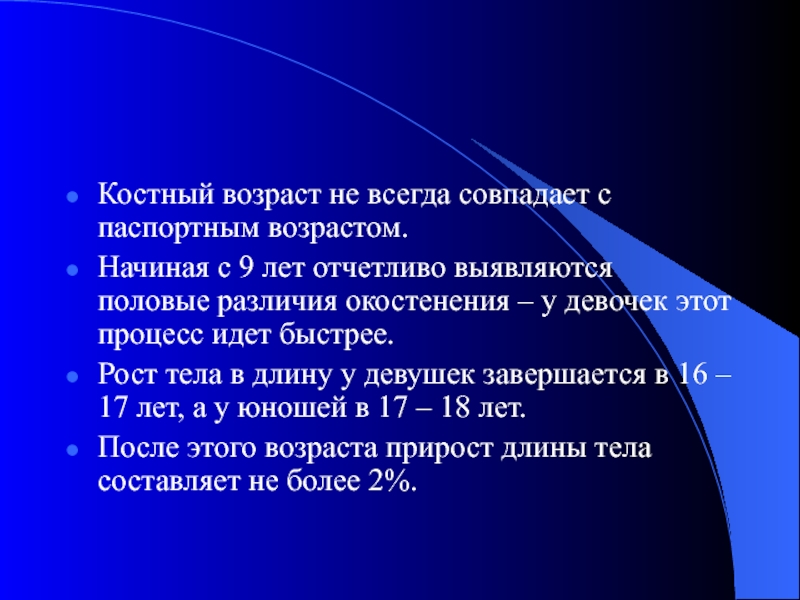 Костный возраст не всегда совпадает с паспортным возрастом.