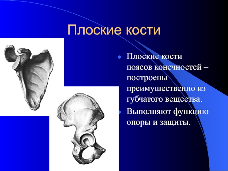 Плоские кости поясов конечностей – построены преимущественно из губчатого