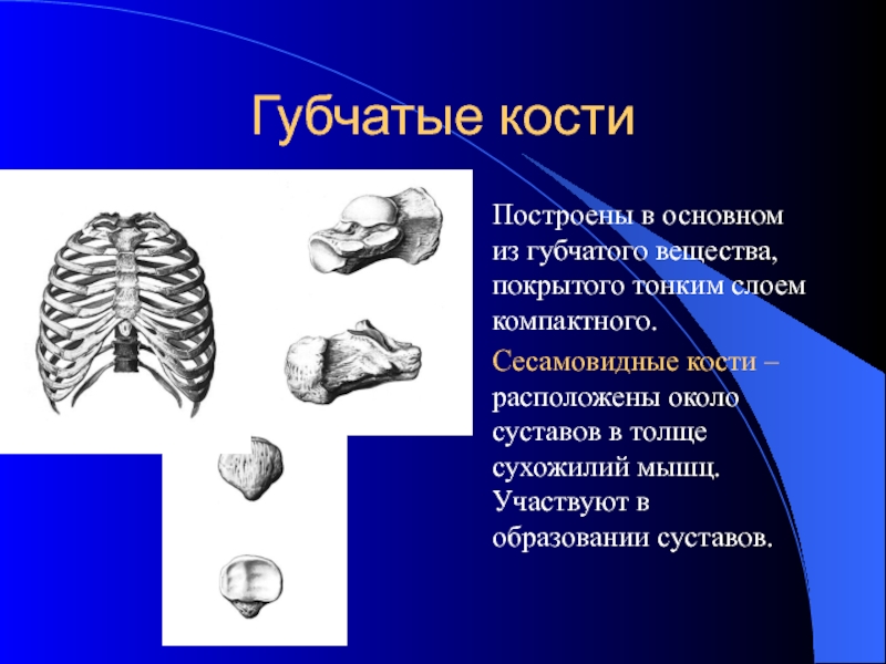 Построены в основном из губчатого вещества, покрытого тонким слоем