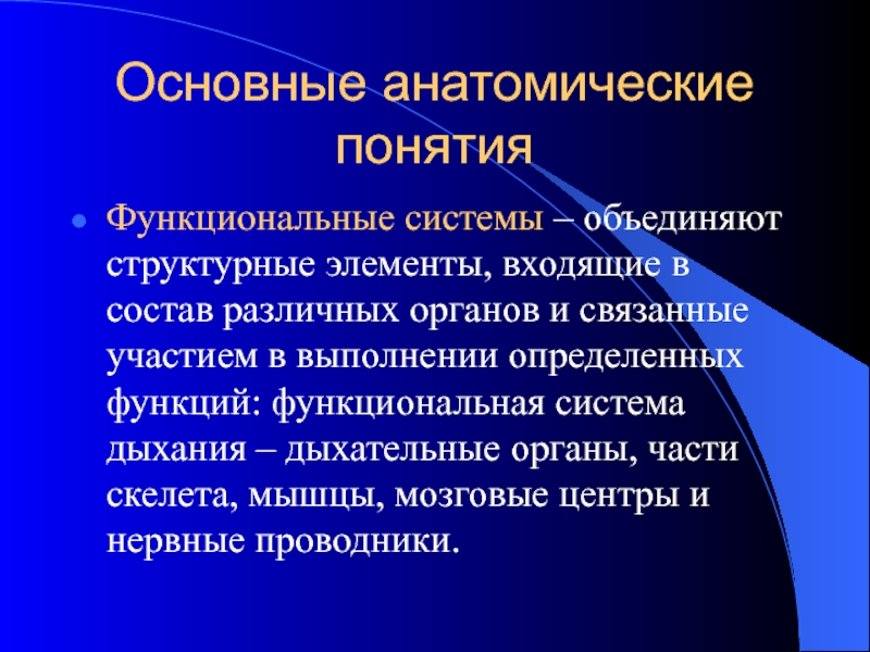 функциональная система дыхания – дыхательные органы, части скелета, мышцы, мозговые центры и нервные проводники.