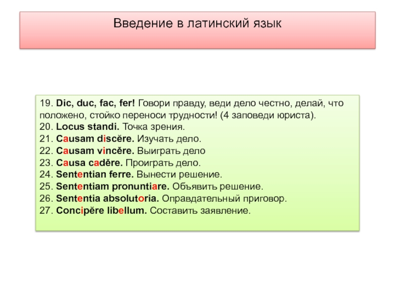 18. Respondēre, cavēre, agěre. Давать ответы, составлять документы, выступать на суде (3 вида деятельности юриста).