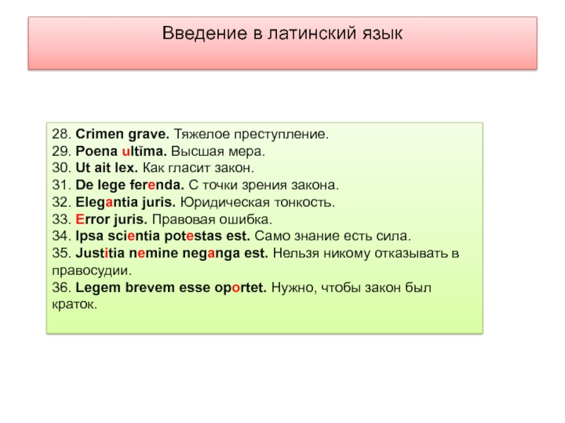 5. Legis virtus est imperāre, vetāre, permittĕre, punire. Сила закона — повелевать, запрещать, разрешать, карать.