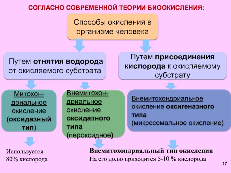 Слайд 17СОГЛАСНО СОВРЕМЕННОЙ ТЕОРИИ БИООКИСЛЕНИЯ: