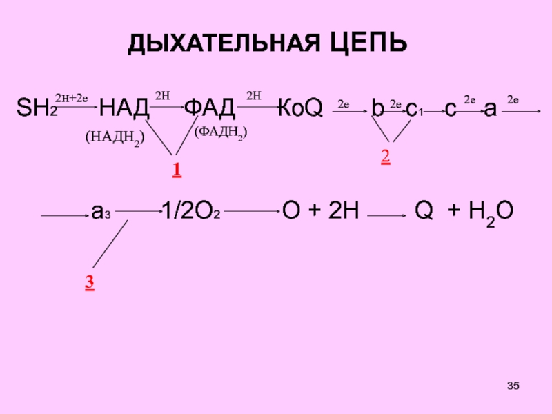Слайд 36ДЫХАТЕЛЬНАЯ ЦЕПЬ И РЕДОКС ПОТЕНЦИАЛ