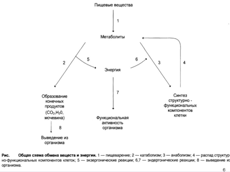 В процессе обмена поступившие в организм вещества превращаются в собственные вещества тканей и в конечные продукты, выводящиеся из организма. При этих превращениях освобождается и поглощается энергия.