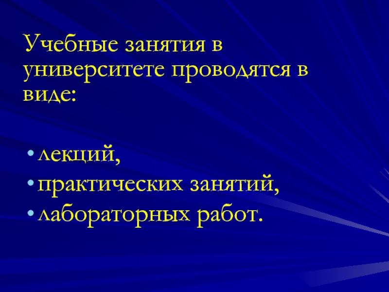 Слайд 16Учебные занятия в университете проводятся в виде: