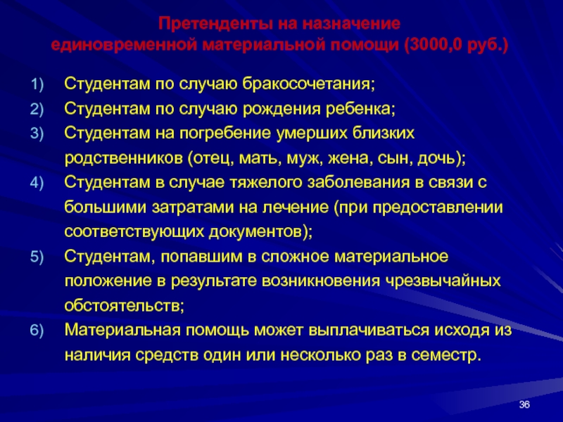 Студентам, попавшим в сложное материальное положение в результате возникновения чрезвычайных обстоятельств;