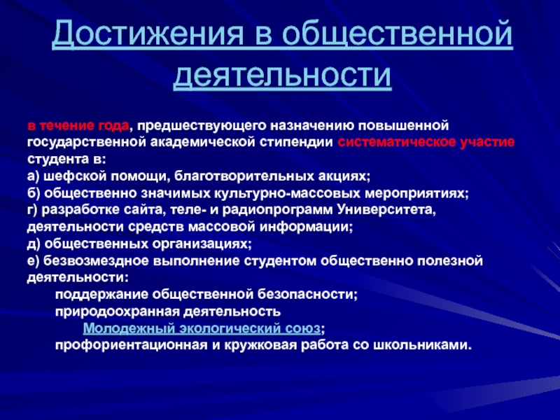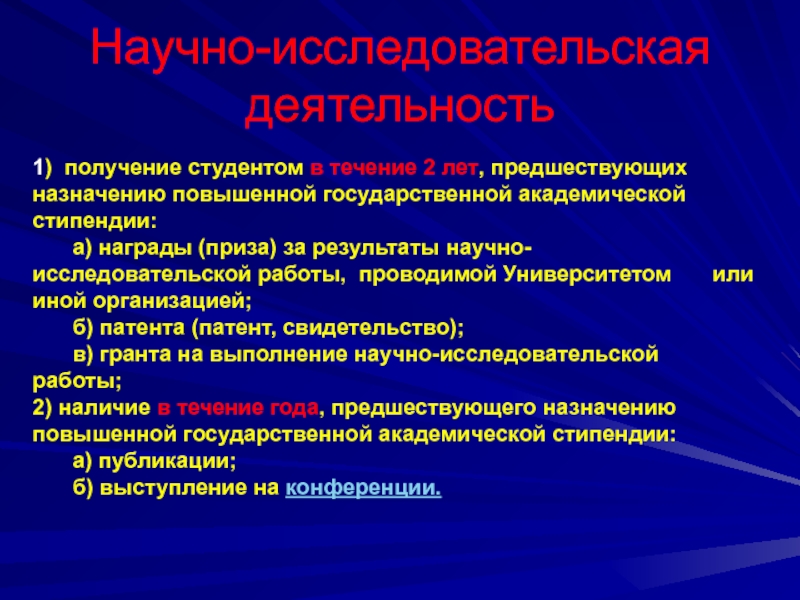 2) наличие в течение года, предшествующего назначению повышенной государственной академической стипендии: