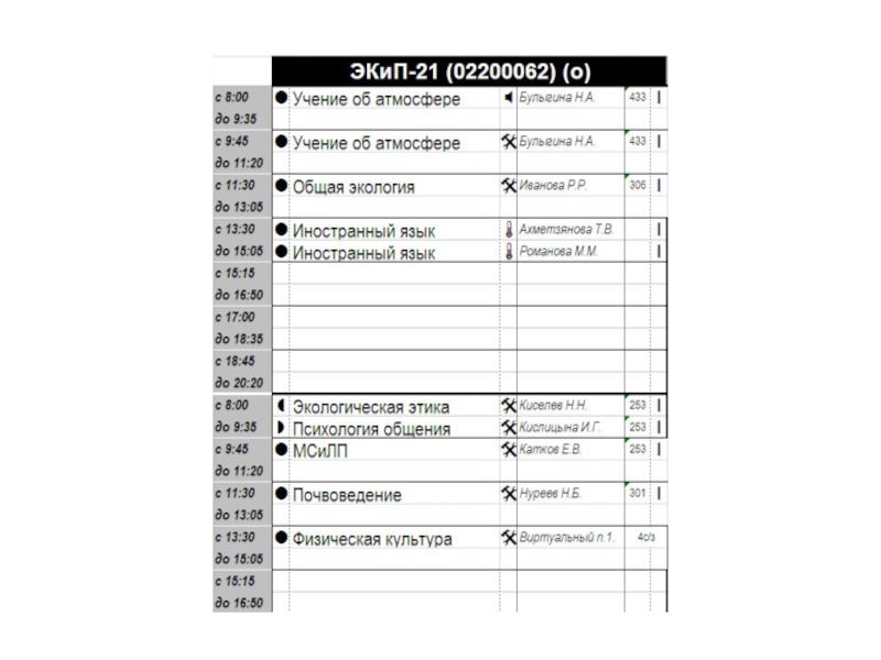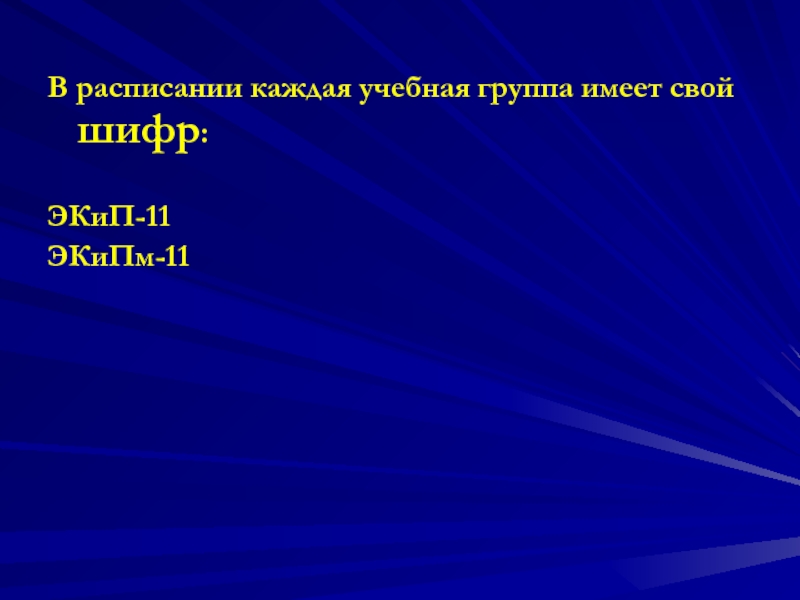Слайд 18В расписании каждая учебная группа имеет свой шифр: