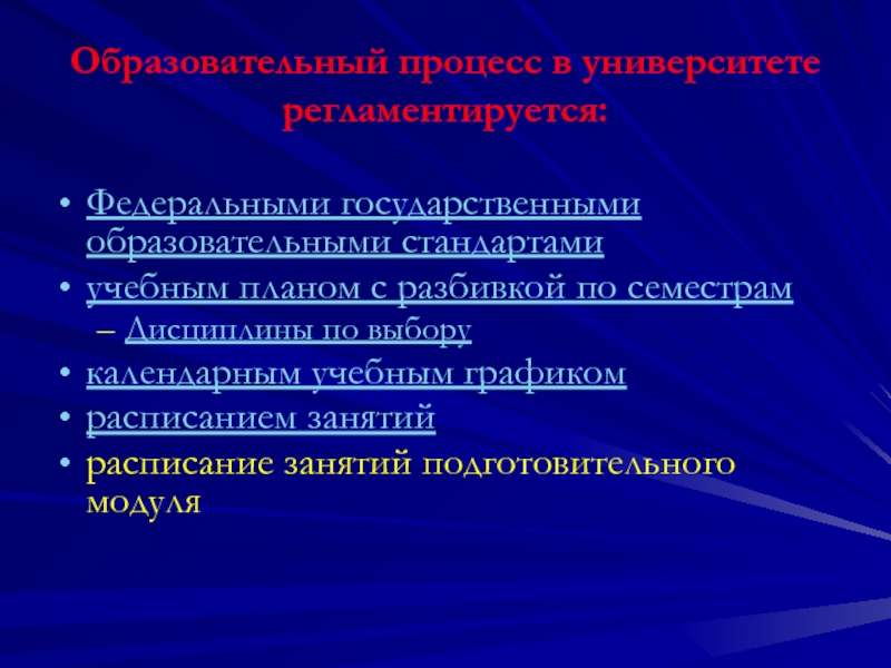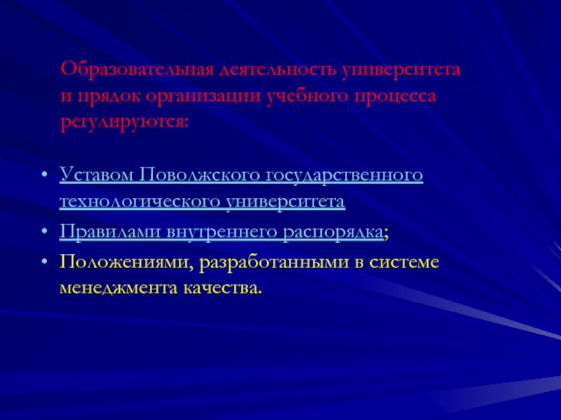 Образовательная деятельность университета и прядок организации учебного процесса регулируются: