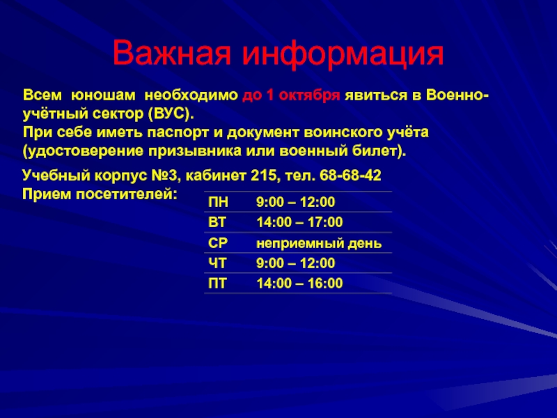 Всем юношам необходимо до 1 октября явиться в Военно-учётный