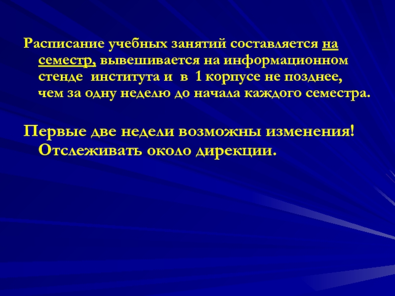 Слайд 11Расписание учебных занятий составляется на семестр, вывешивается на информационном стенде