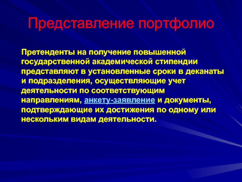 соответствующим направлениям, анкету-заявление и документы, подтверждающие их достижения по одному или нескольким видам деятельности.