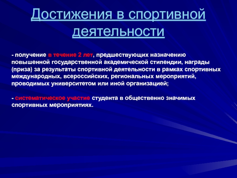 назначению повышенной государственной академической стипендии, награды (приза) за результаты спортивной