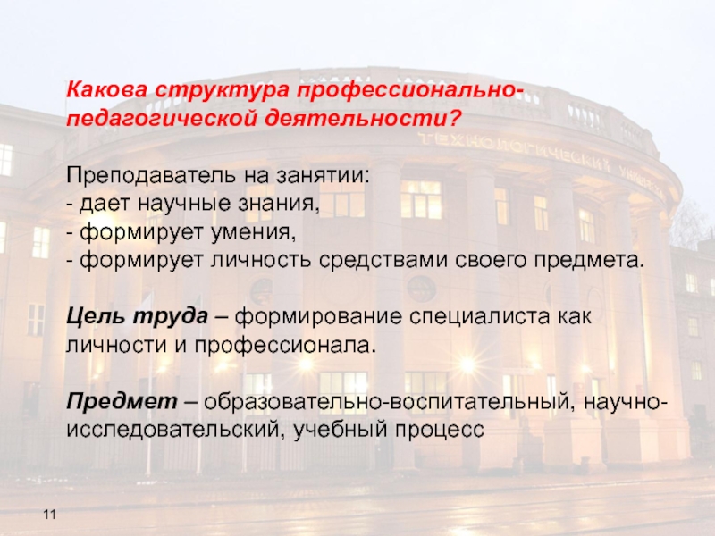 Слайд 11Какова структура профессионально-педагогической деятельности?