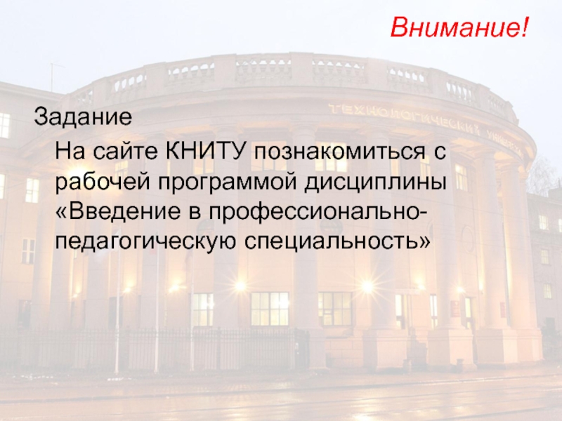 программой дисциплины «Введение в профессионально-педагогическую специальность».