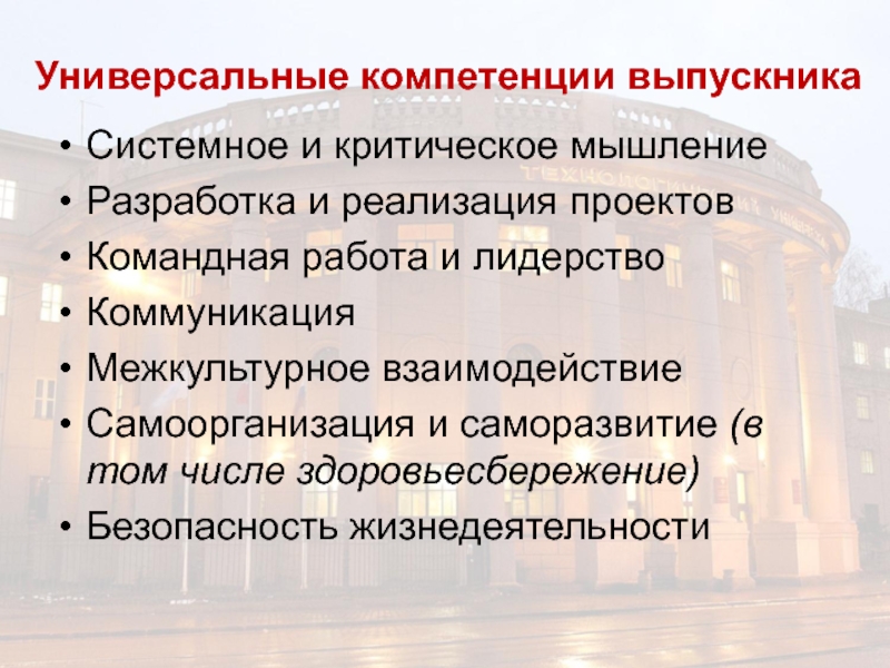 программы бакалавриата у выпускника должны быть сформированы универсальные, общепрофессиональные и