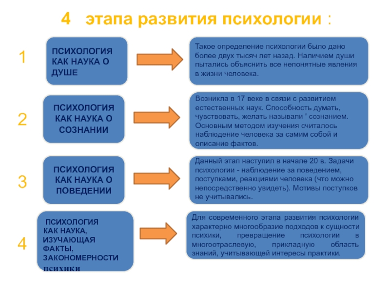 4 этапа развития психологии :
