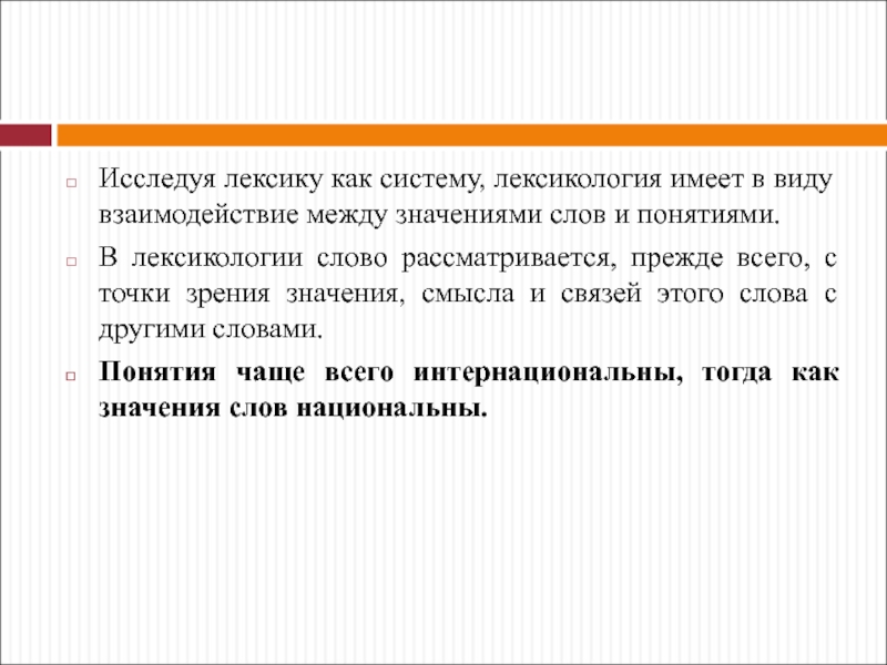 Слайд 4Исследуя лексику как систему, лексикология имеет в виду взаимодействие между