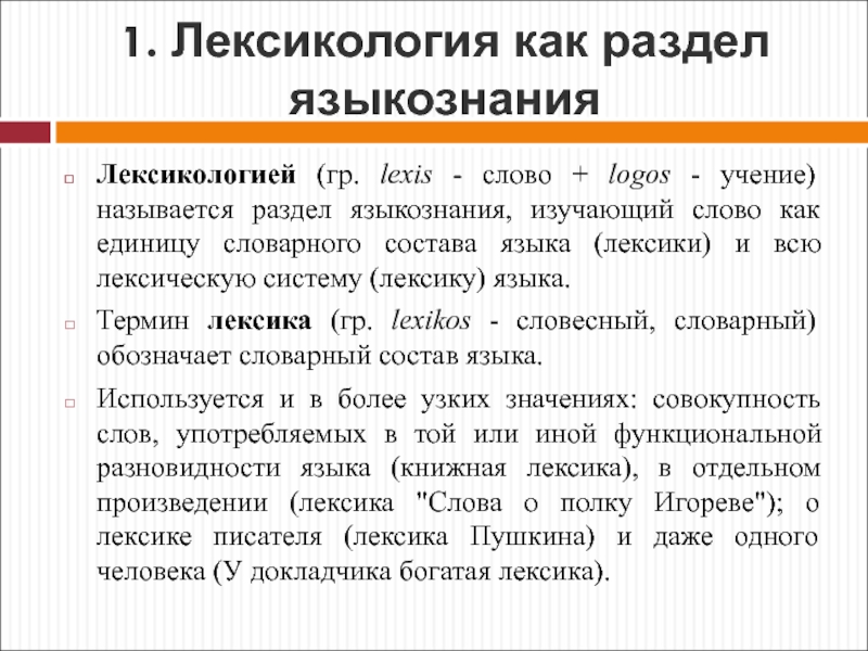 1. Лексикология как раздел языкознания