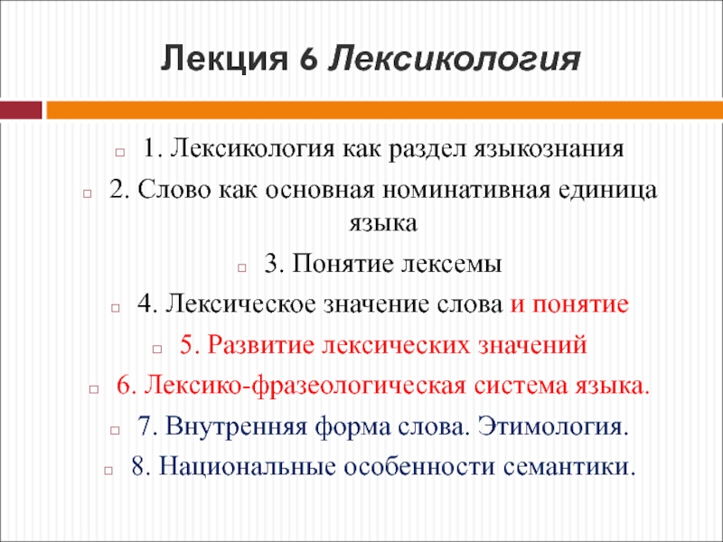 Слайд 2Лекция 6 Лексикология