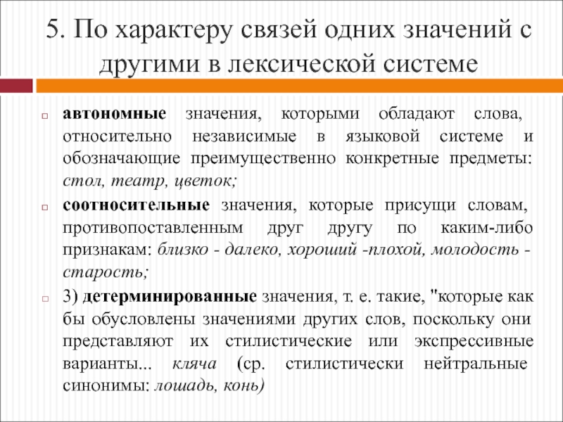 с точки зрения значения, смысла и связей этого слова с другими словами.