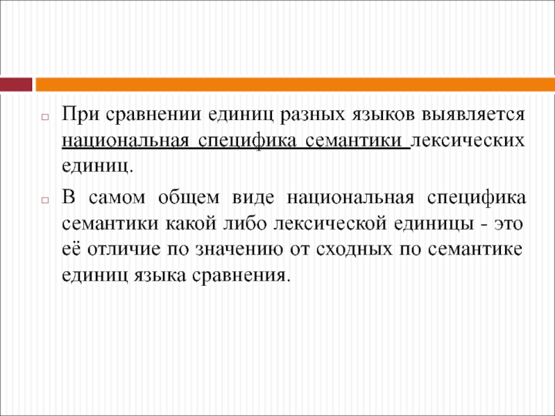 Слайд 70При сравнении единиц разных языков выявляется национальная специфика семантики лексических