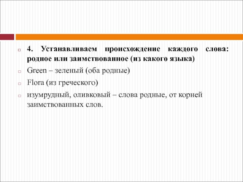 Слайд 774. Устанавливаем происхождение каждого слова: родное или заимствованное (из какого