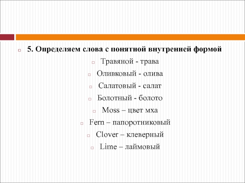 Слайд 785. Определяем слова с понятной внутренней формой