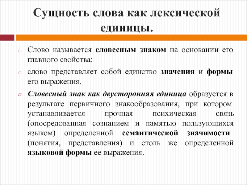 Слайд 9Сущность слова как лексической единицы.