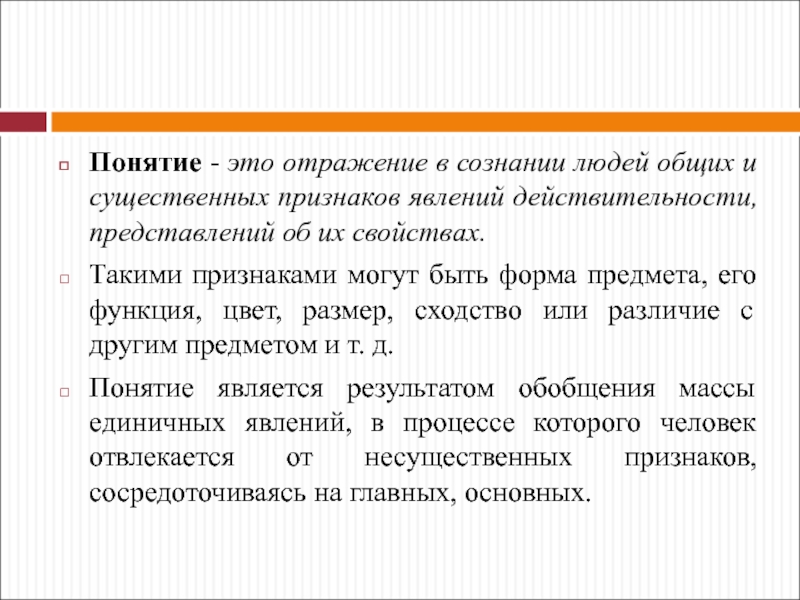 Слайд 20Понятие - это отражение в сознании людей общих и существенных