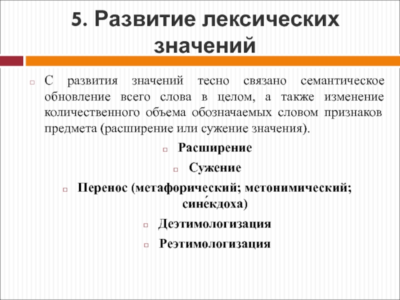 Развитие лексических значений