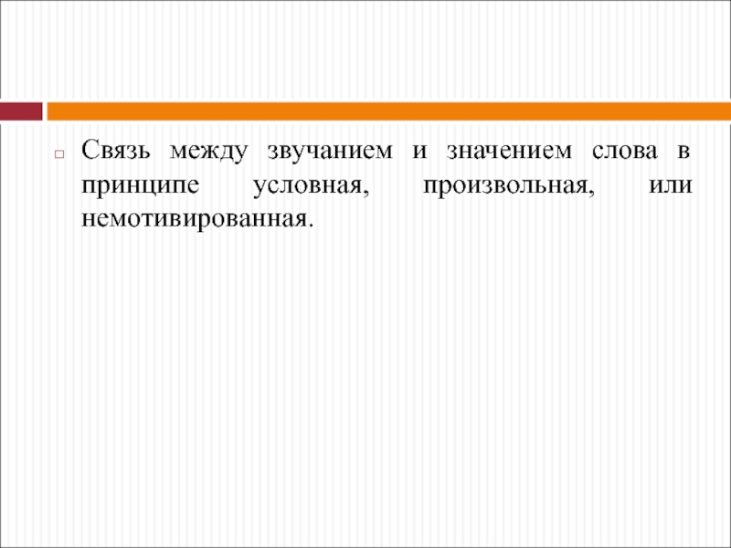 Слайд 10Связь между звучанием и значением слова в принципе условная, произвольная,