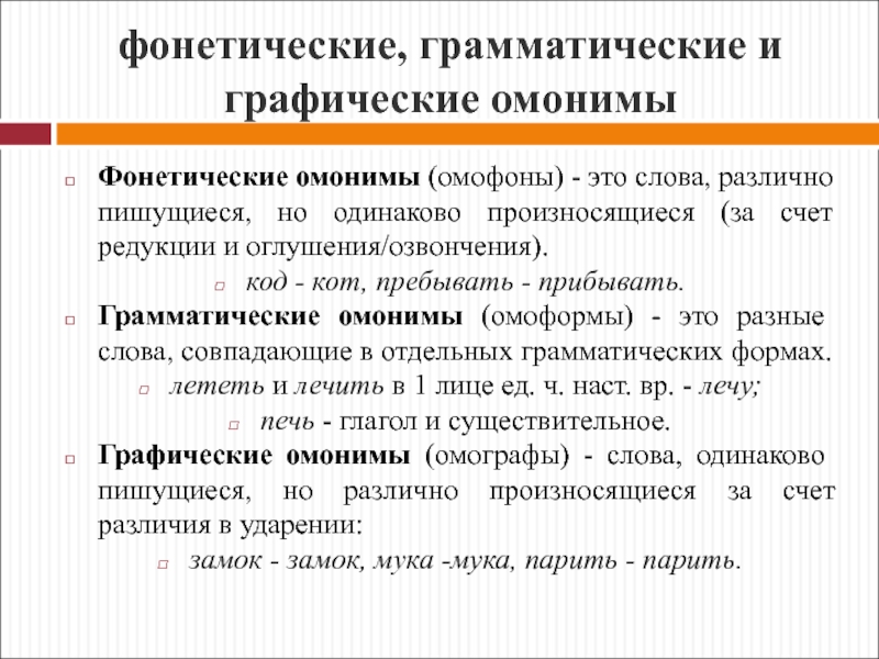 Словоформы, различающиеся только грамматических значением, например «стола -