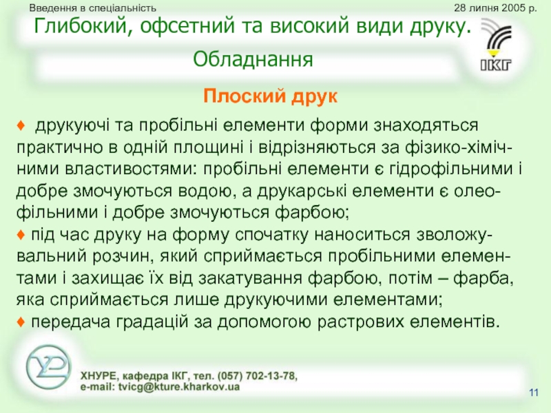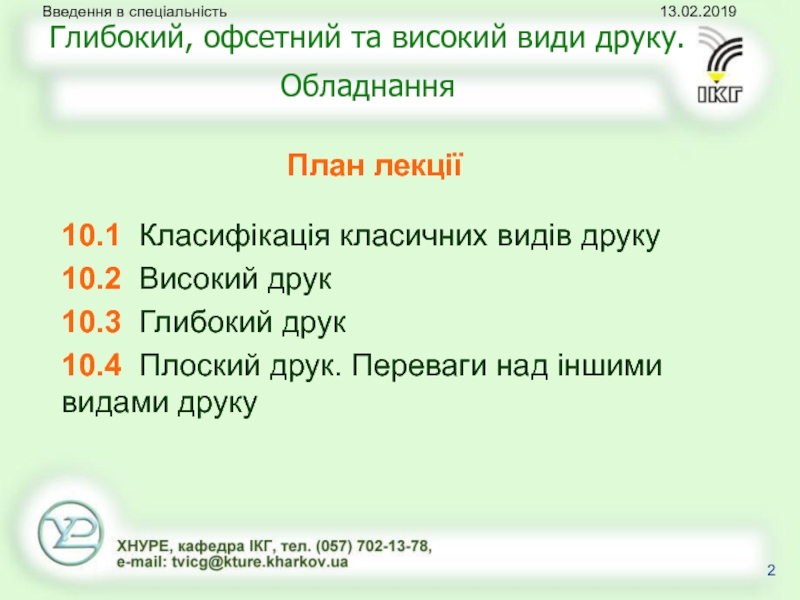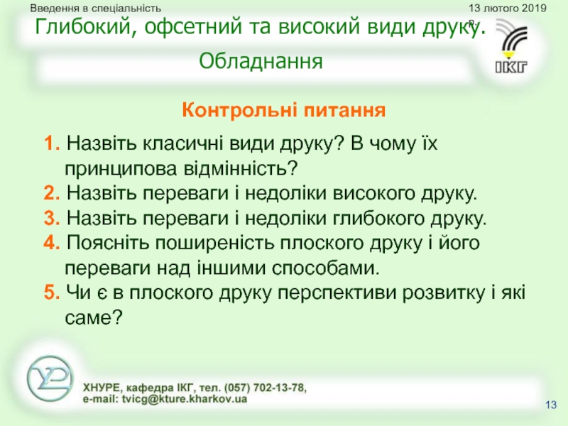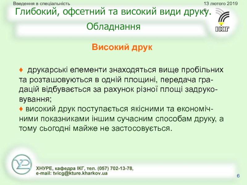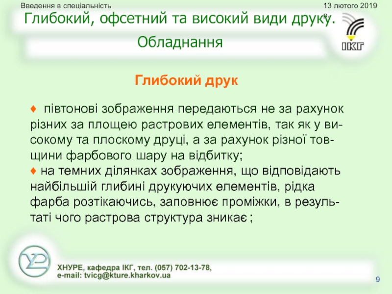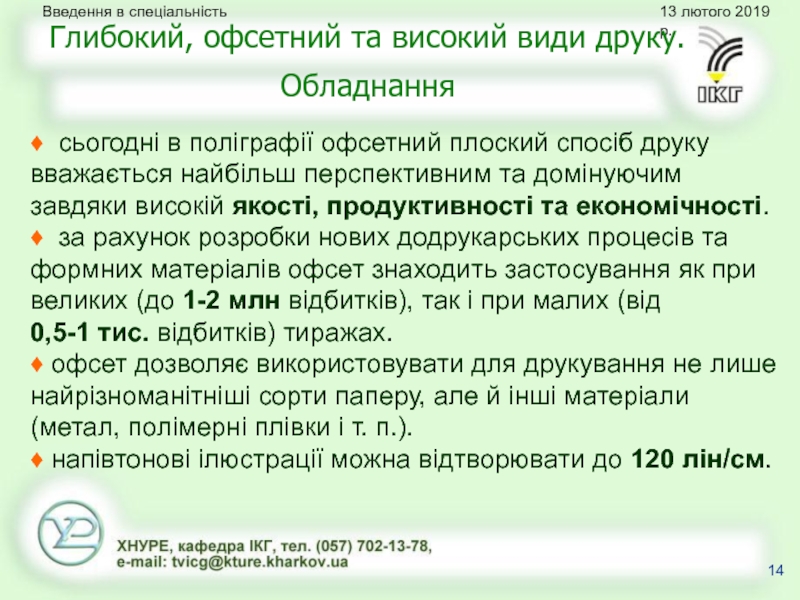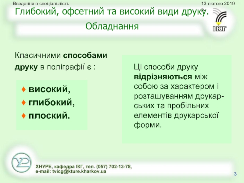 Глибокий, офсетний та високий види друку. Обладнання