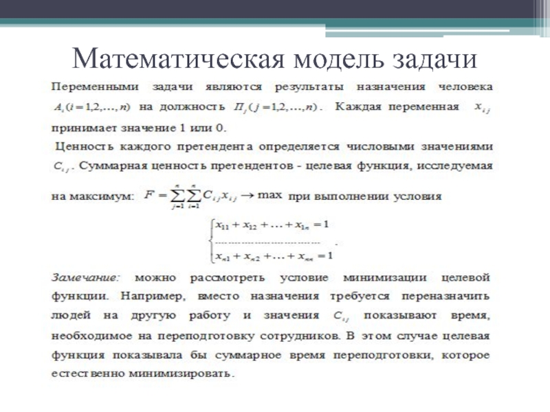 Слайд 2Математическая модель - внутренне непротиворечивая замкнутая система математических соотношений, предназначенная