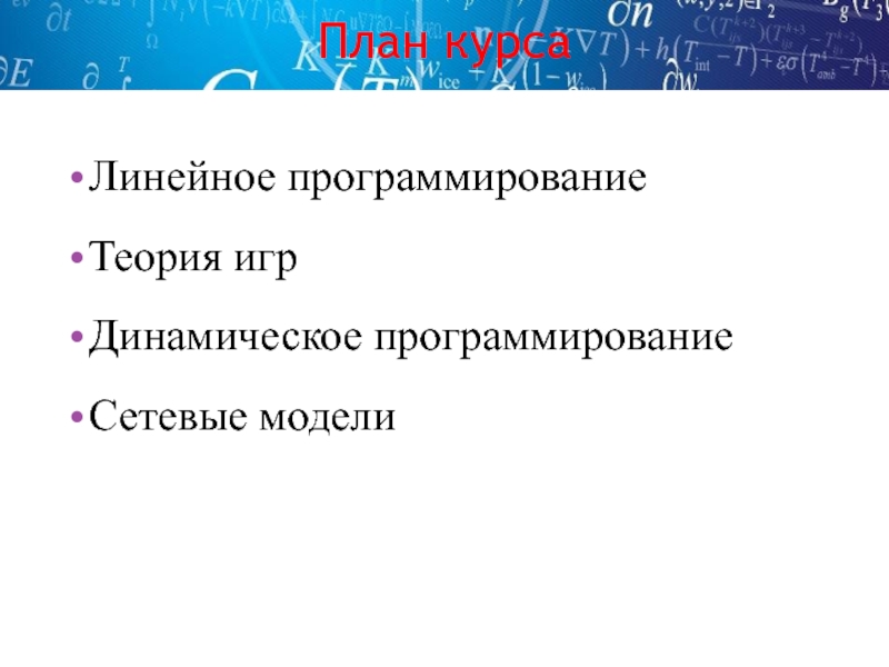 Исследование операций – научная дисциплина, занимающаяся разработкой и практическим применением