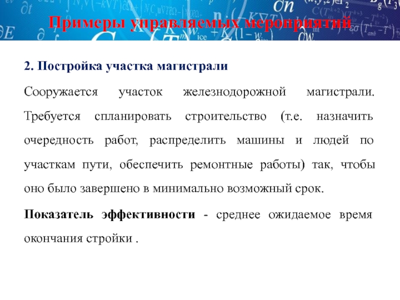 Показатель эффективности - среднее ожидаемое время окончания стройки .