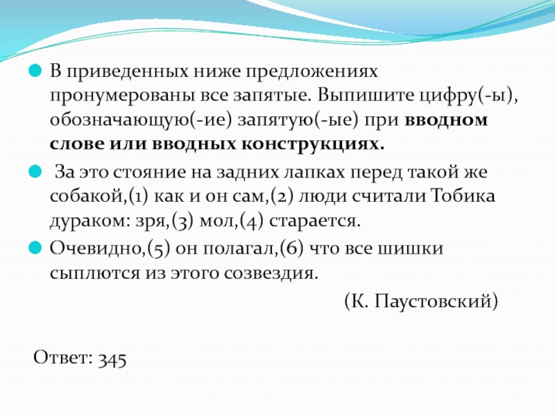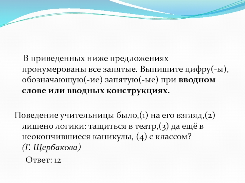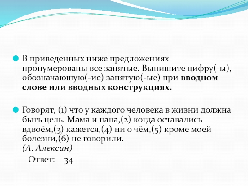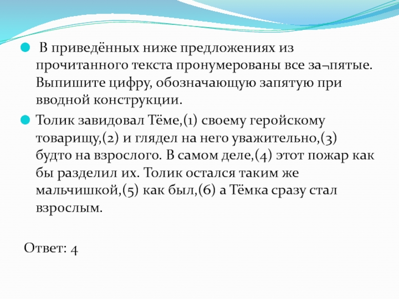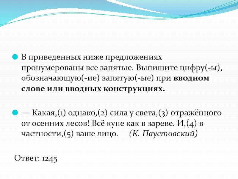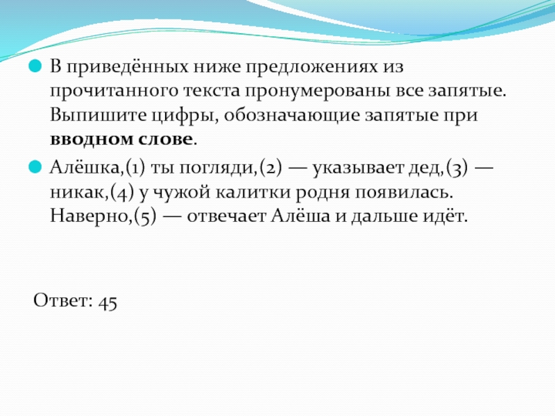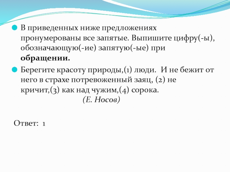 Слайд 77В приведенных ниже предложениях пронумерованы все запятые. Выпишите цифру(-ы), обозначающую(-ие)