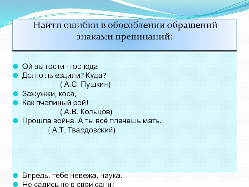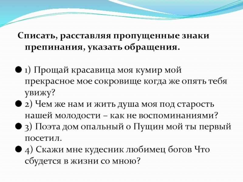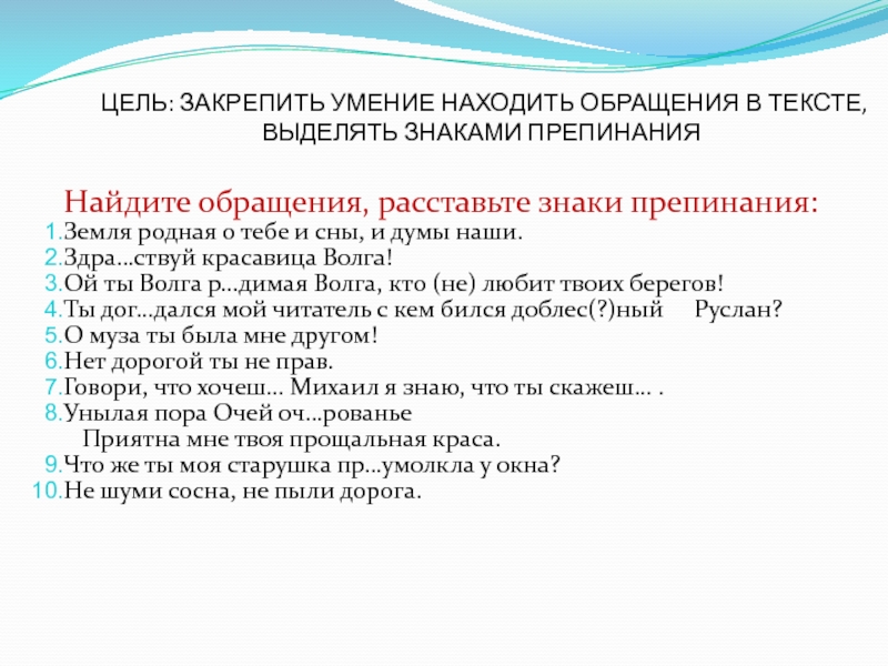 Слайд 70Списать, расставляя пропущенные знаки препинания, указать обращения.