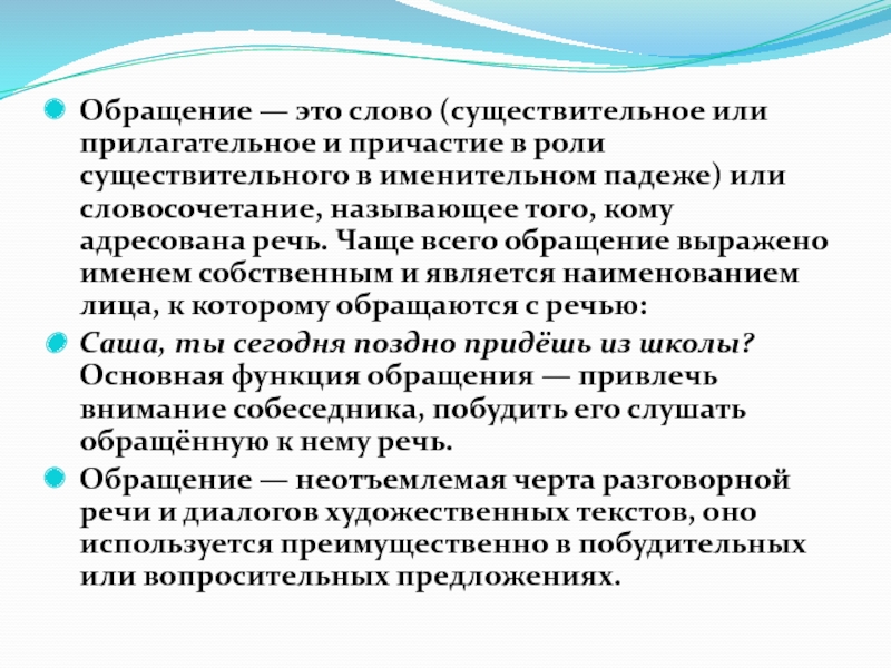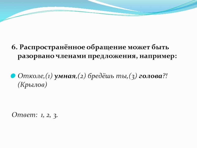 Слайд 716. Распространённое обращение может быть разорвано членами предложения, например: