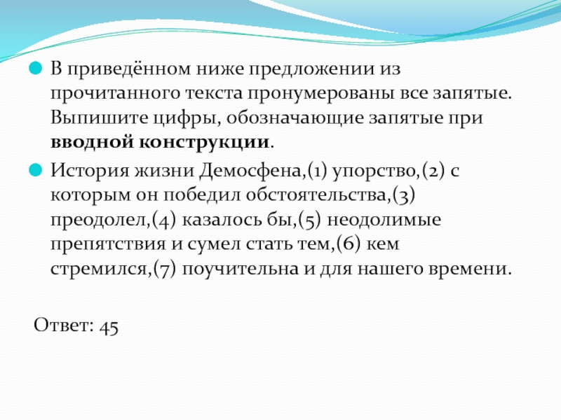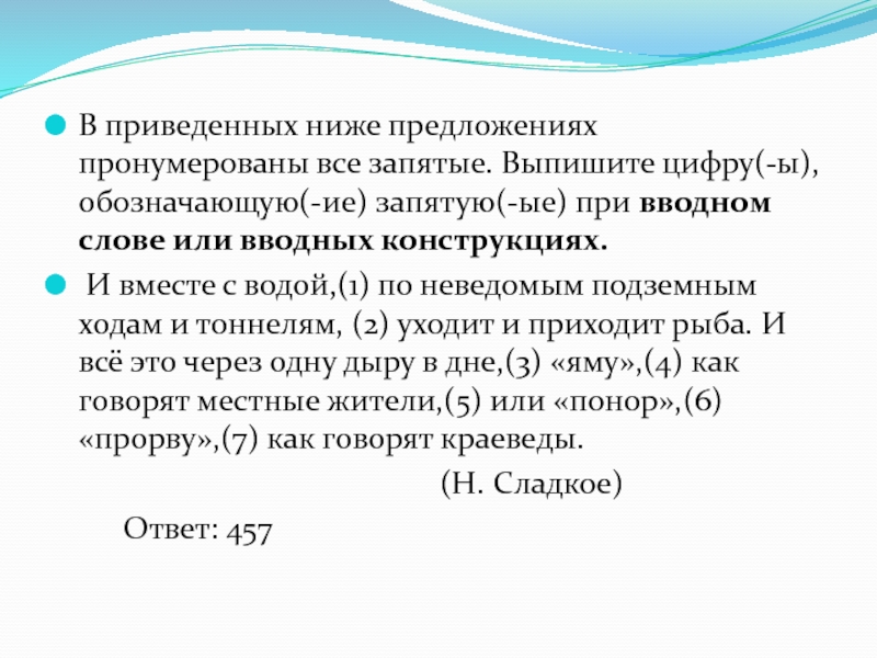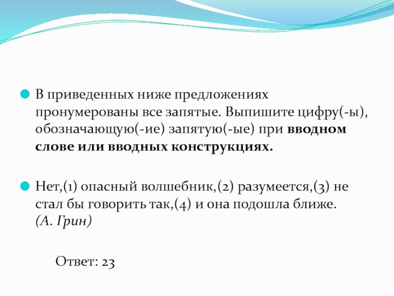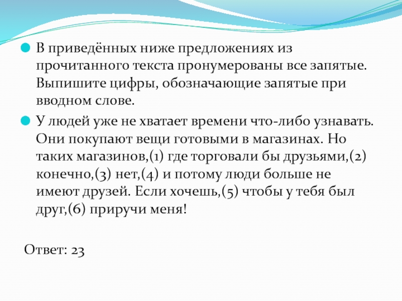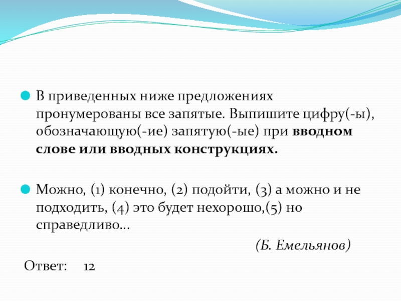 Слайд 75В приведенных ниже предложениях пронумерованы все запятые. Выпишите цифру(-ы), обозначающую(-ие)